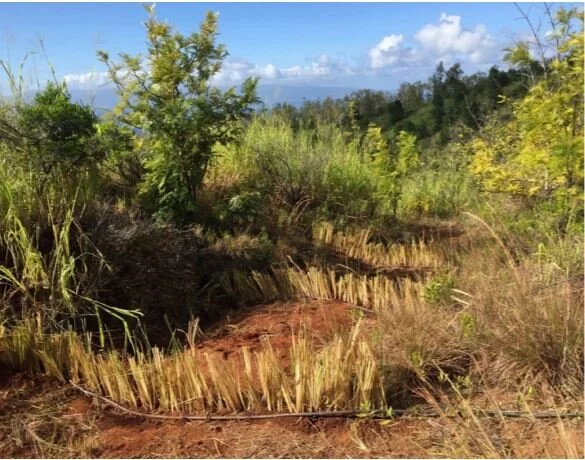 Field crews including volunteers from the Maui Preparatory Academy and other community members prepare the planting areas.